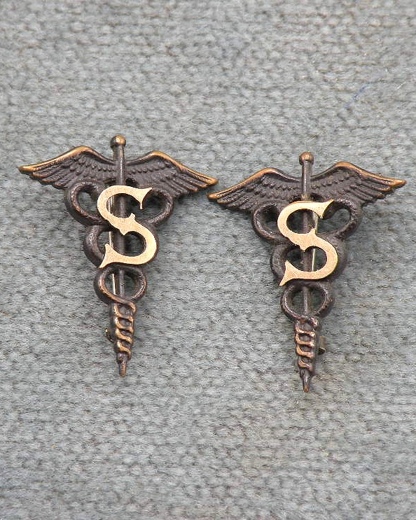 MI-2079 WW1 Army Surgeon's collar insignia, pair.