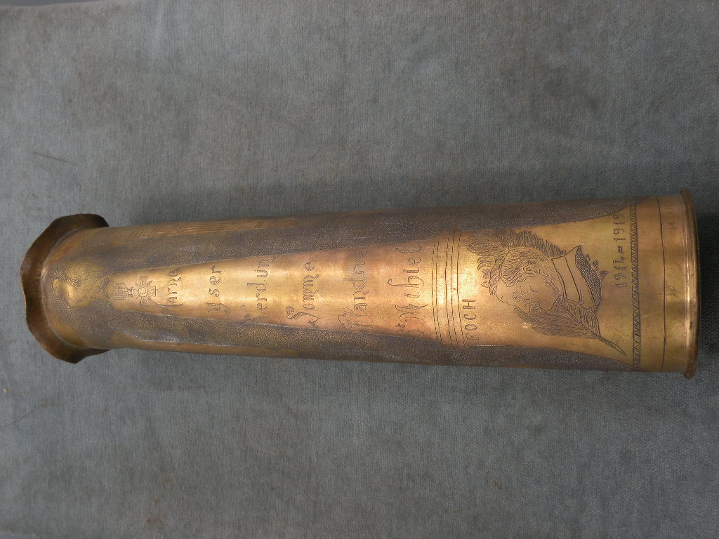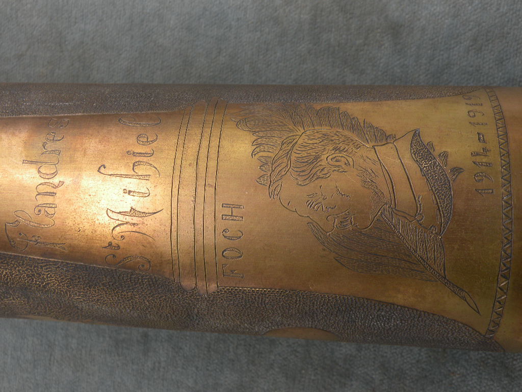T-1141 Very nice trench art shell. Approx 12 inches in