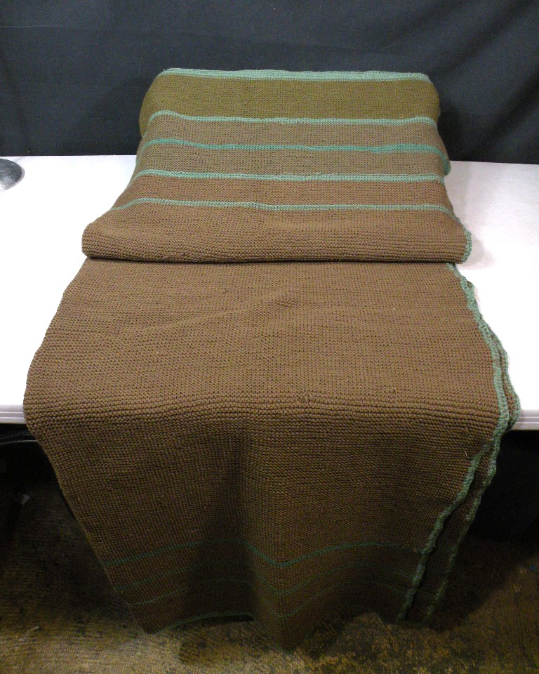 E-6135 WW1 home front knitted OD green blanket. Very