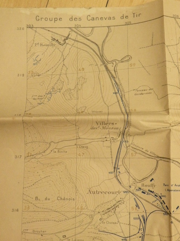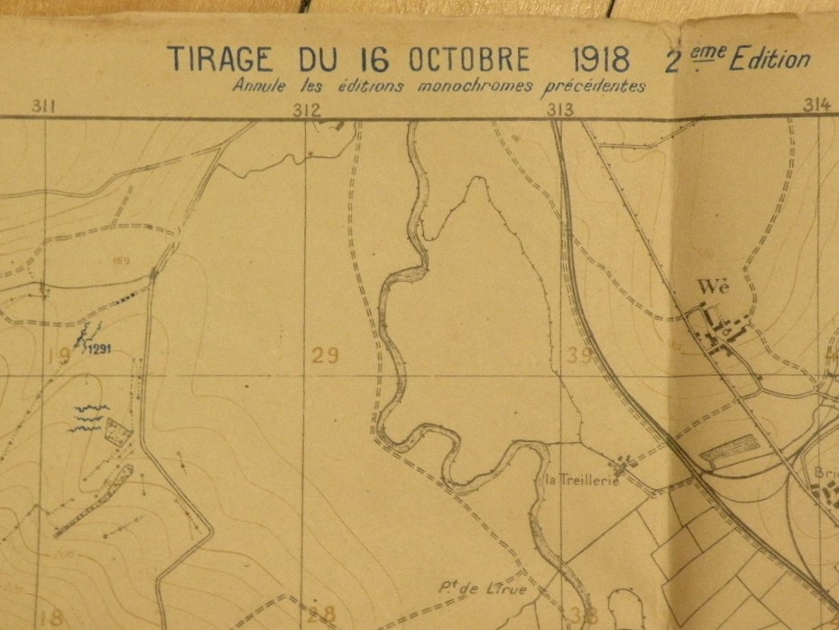 E-6178 Secret trench map of Pont a Moussan from 1918.