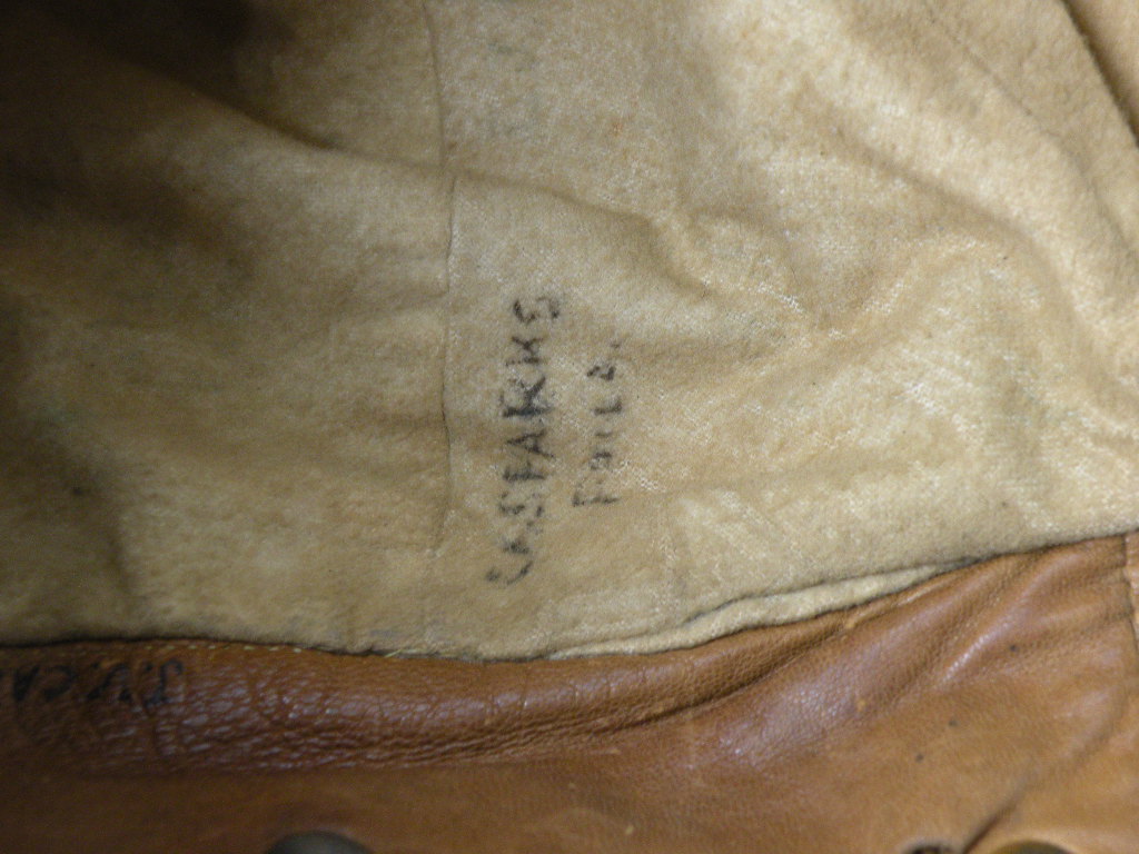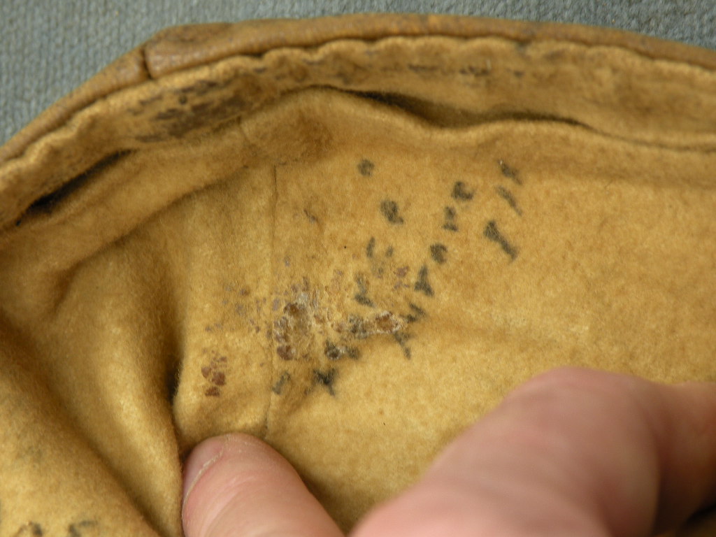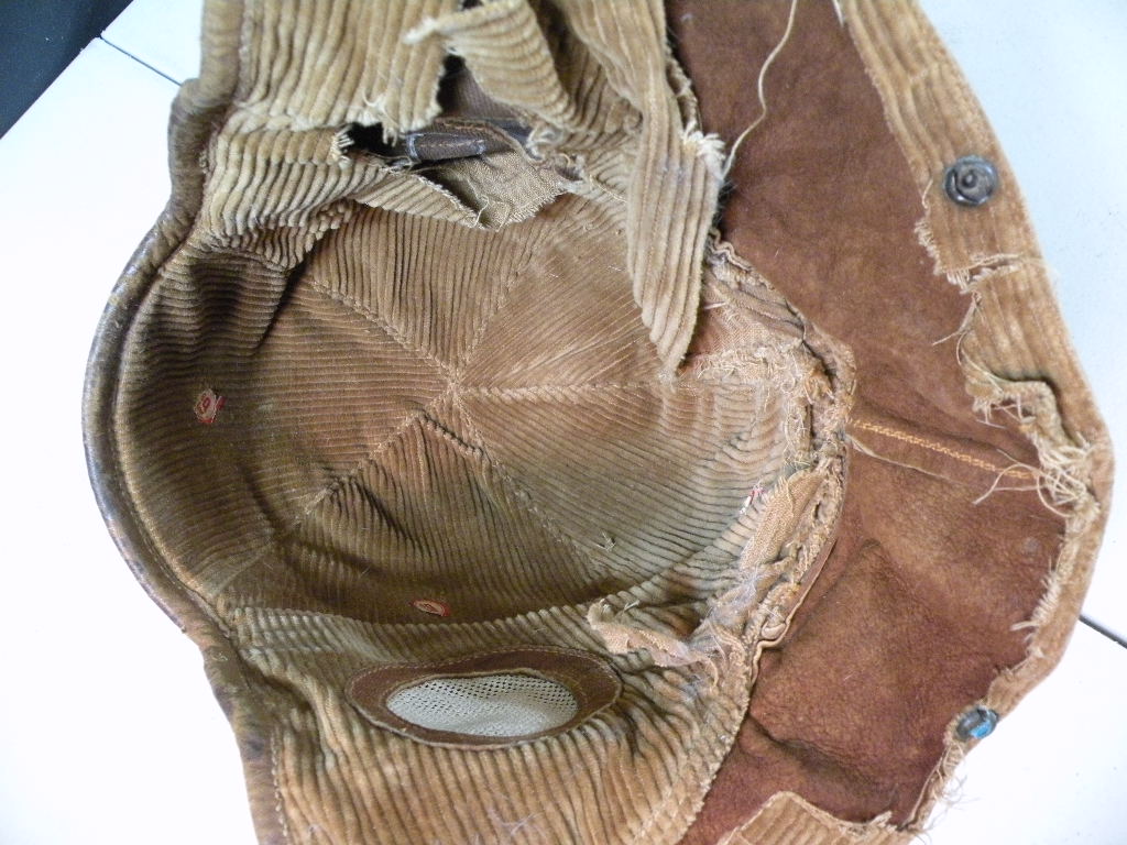 H-2396 WW1 Cloth flight helmet. Inscribed with