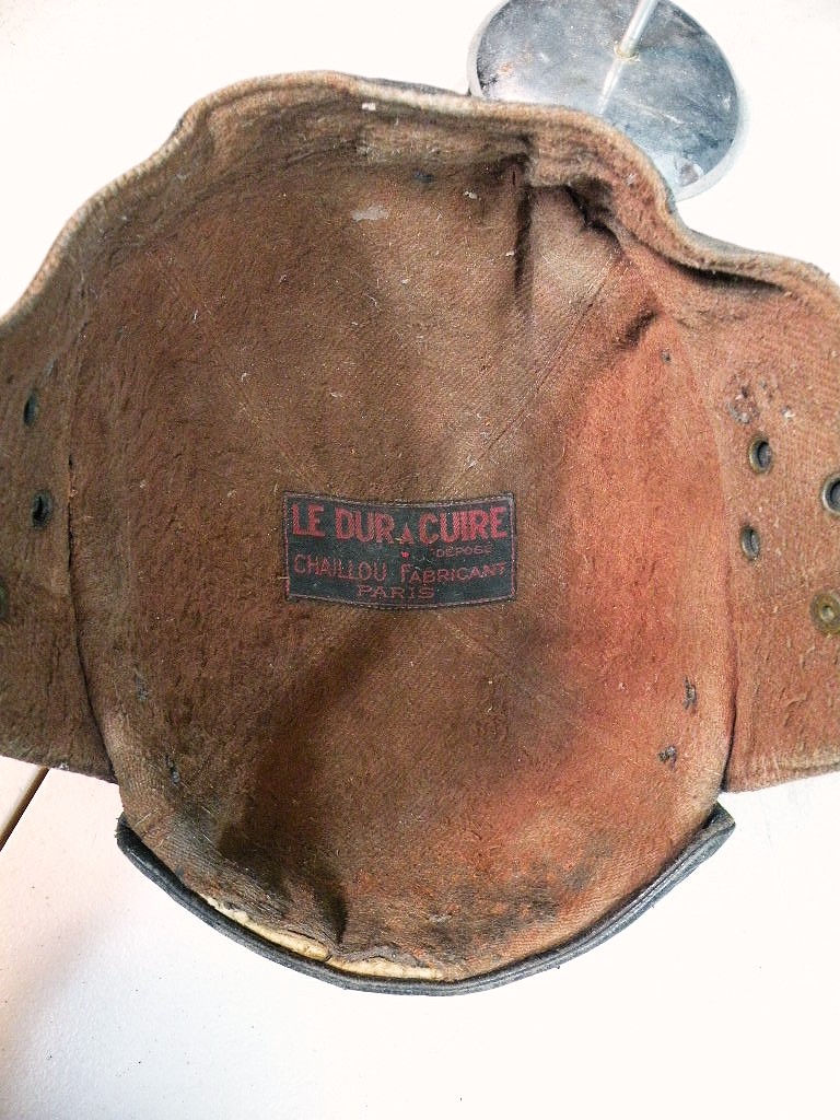 OC-2811 Rare French WW1 Hard Shell Flight Helmet. Very