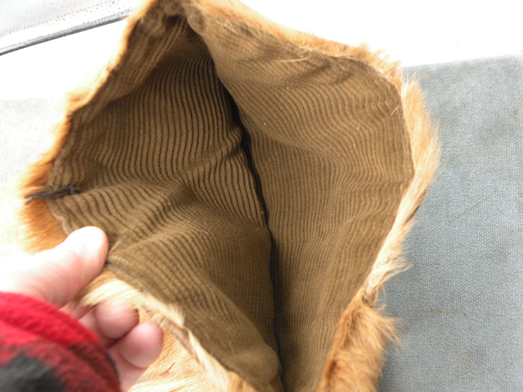 lined with a soft orange or russet-colored suede or felt