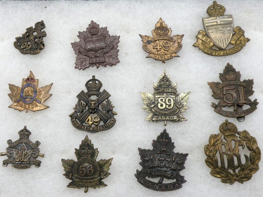 OC-2907 Selection of (12)WW1 Canadian Cap and collar