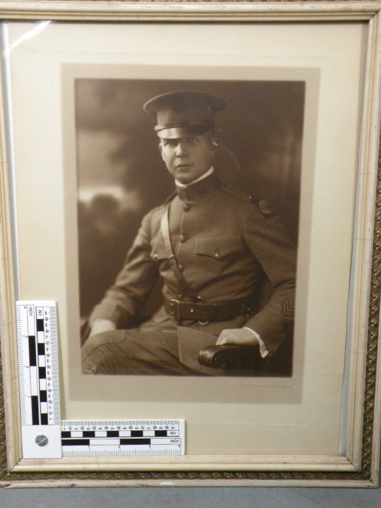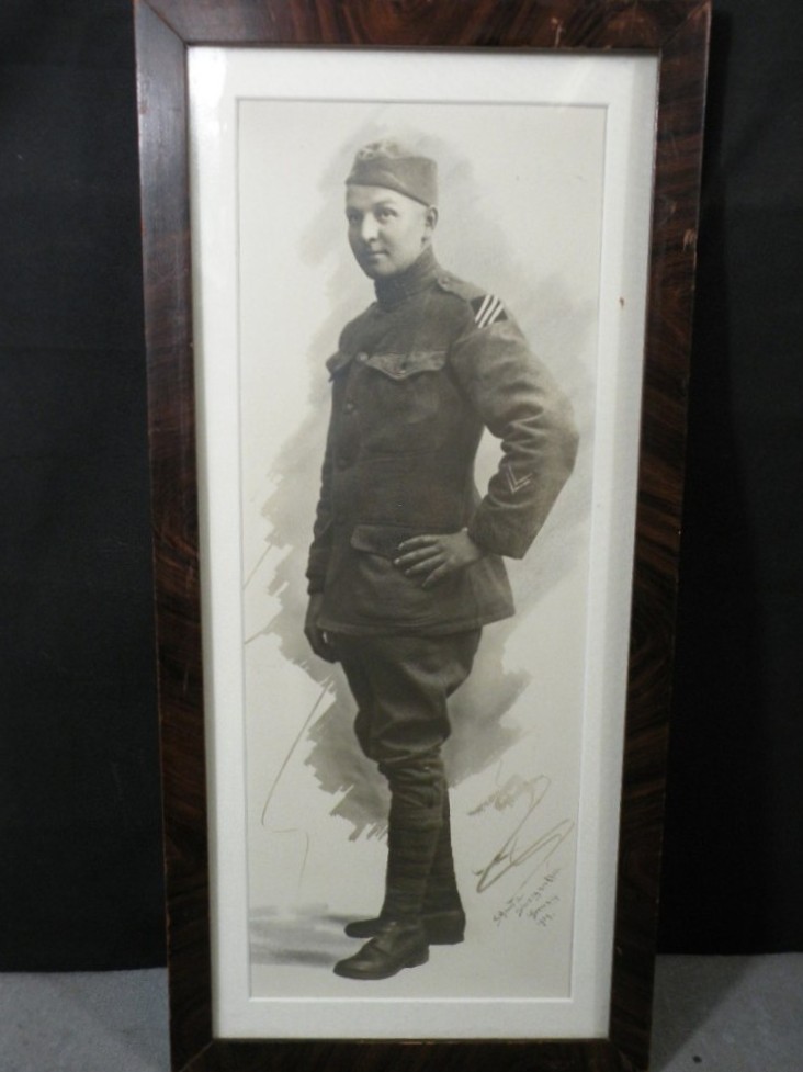 Framed WWI portrait. Frame is scuffed. Approx 10 X 14. $45 |