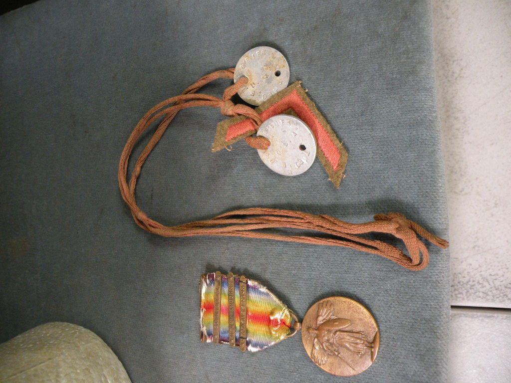 dog tags, Victory Medal and wool puttees. Choice helmet with