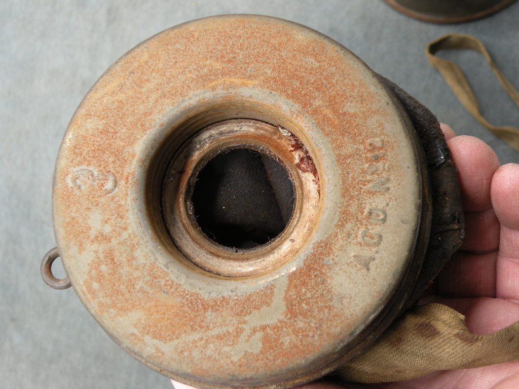 G-2912 WW1 German gas mask and can. Named to the