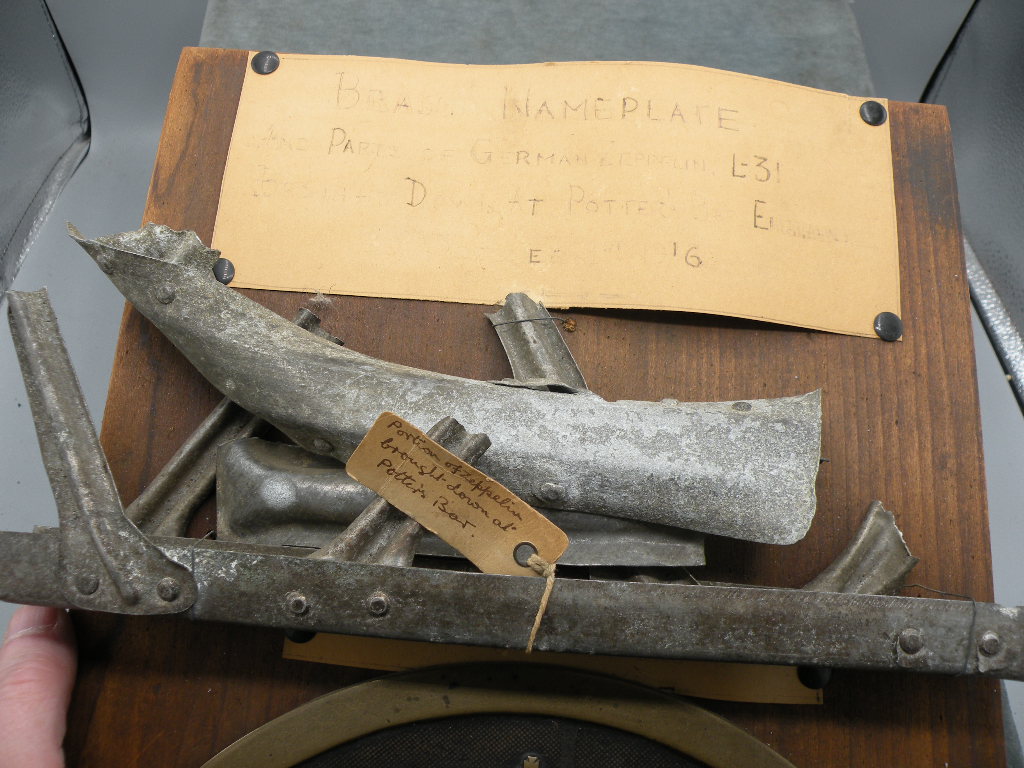 board. The metal fragments are from the German Zeppelin