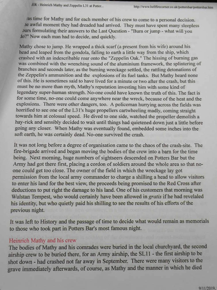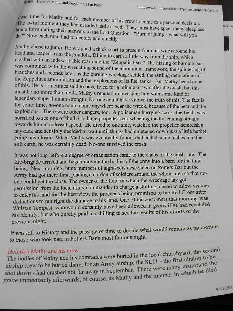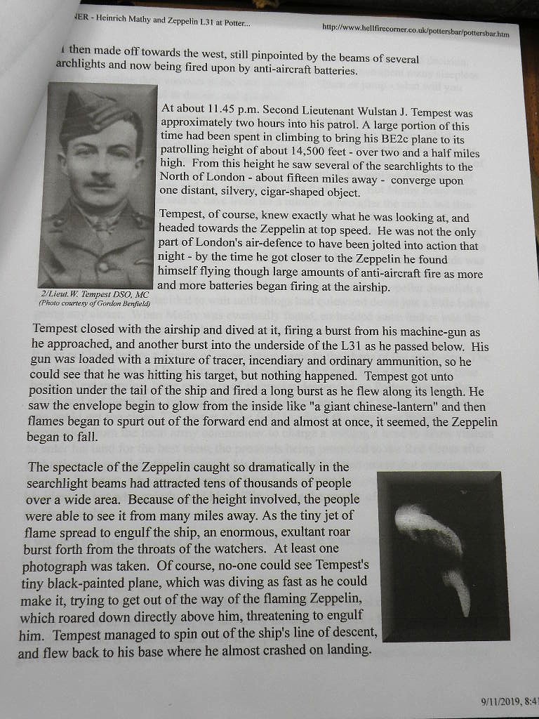 Tempest. The ship fell just oustide Potters Bar, to the