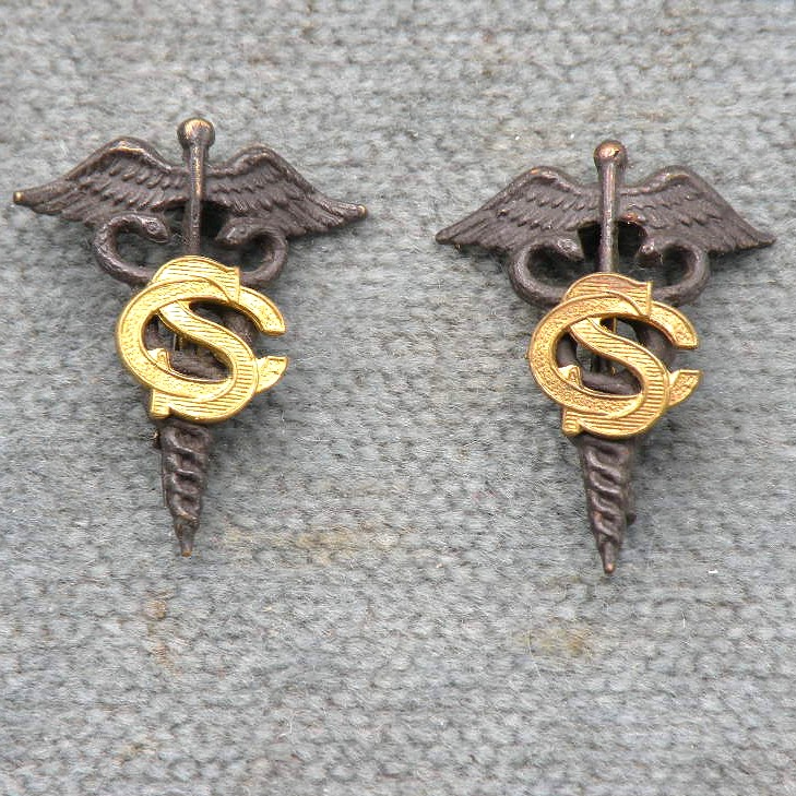 MI-2079 WW1 Army Surgeon's collar insignia, pair.