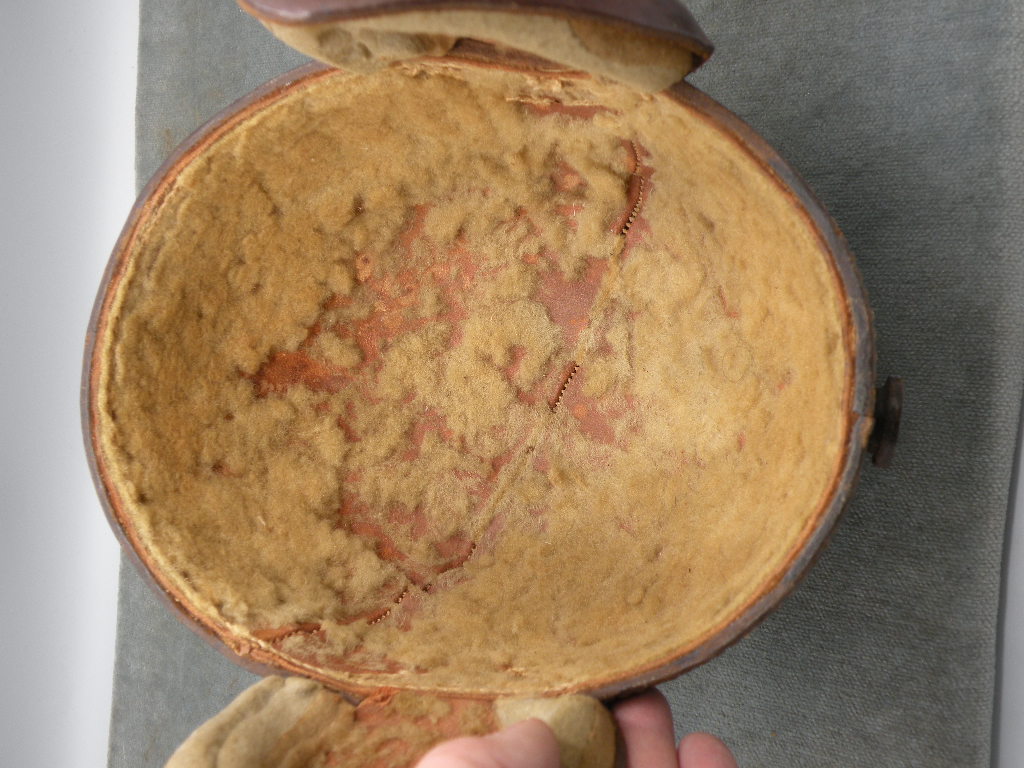 manufactured. Tiny hole to the crown. Set up for a neck/chin