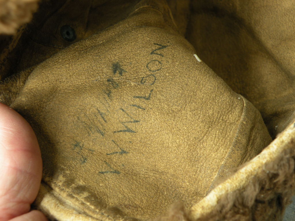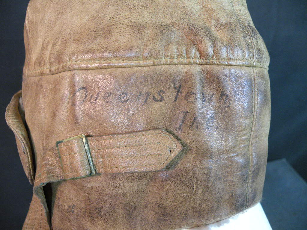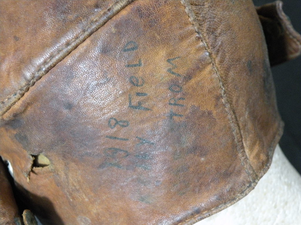H-2396 WW1 Cloth flight helmet. Inscribed with