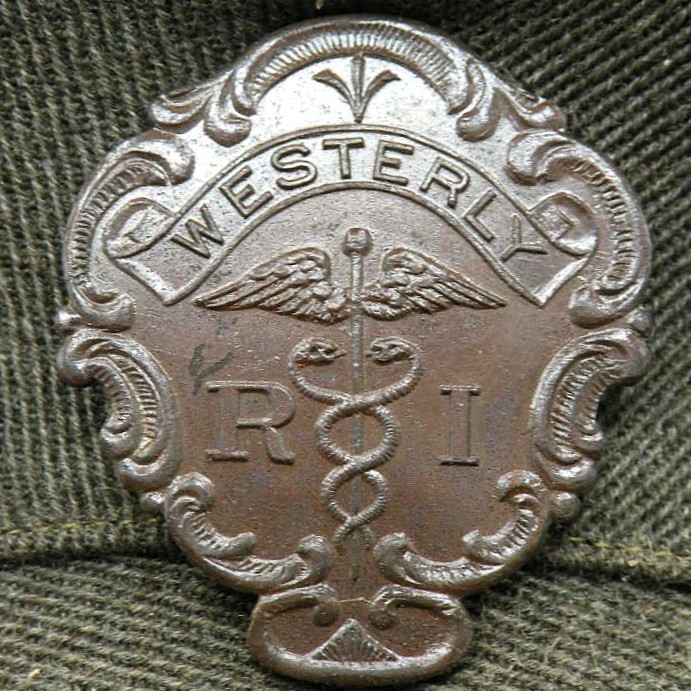 visor cap with Westerly, Rhode Island badge. Side buttons