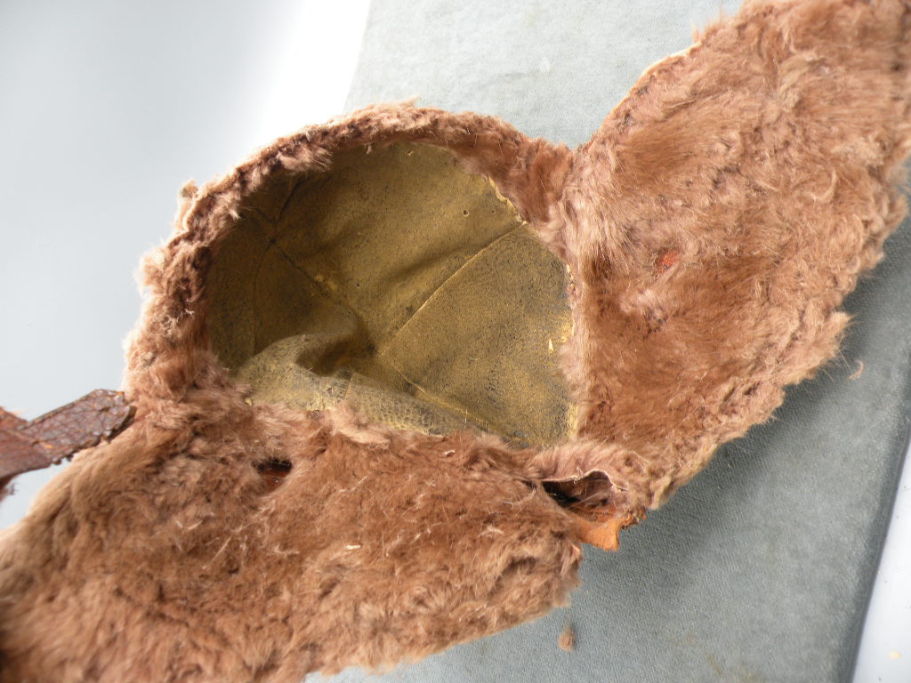 and leather face shield. Fur is gone from the reverse. $350 |