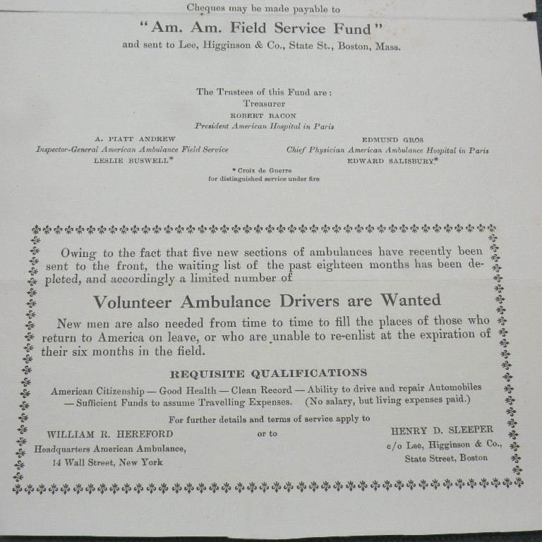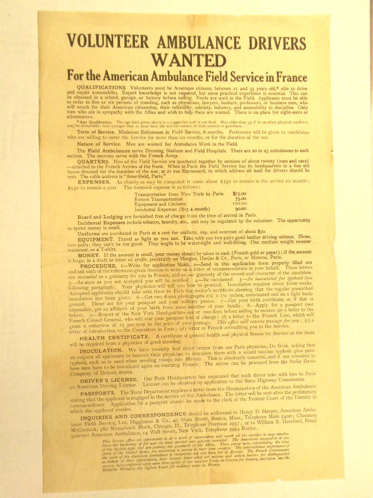 American volunteers for Ambulance Drivers to serve in