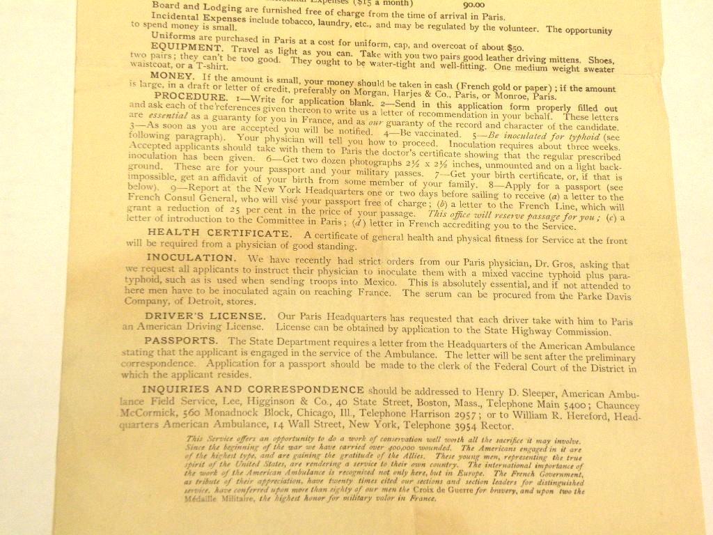 American Ambulance Field Service in 1916. $75$SOLD$ |