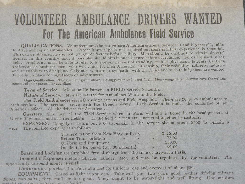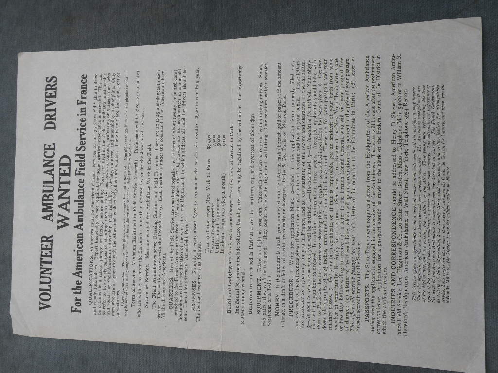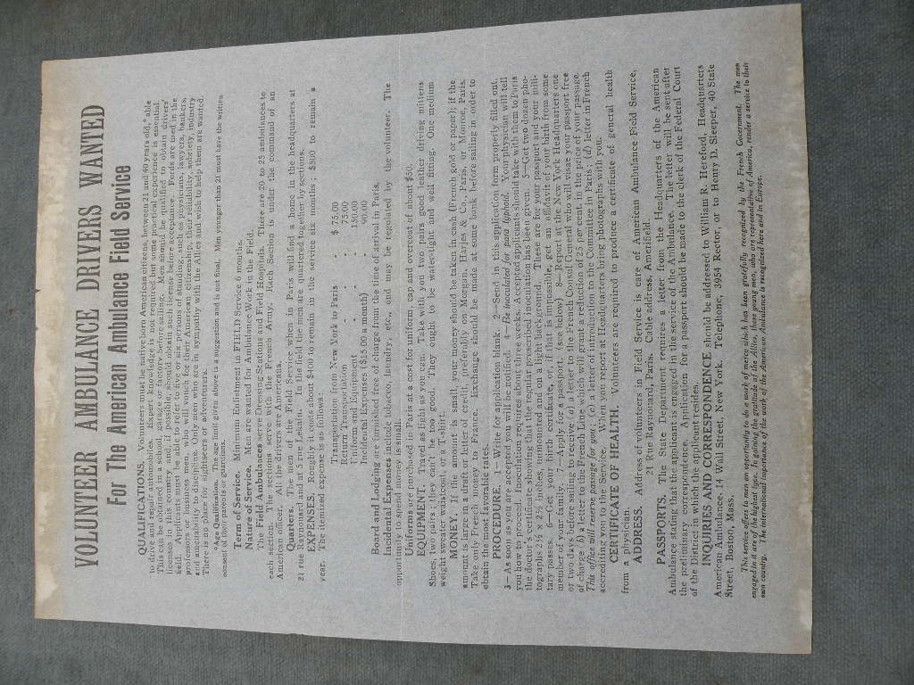 P-1774 Rare, 1916 dated, Volunteer Ambulance Driver's