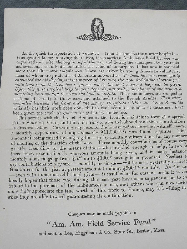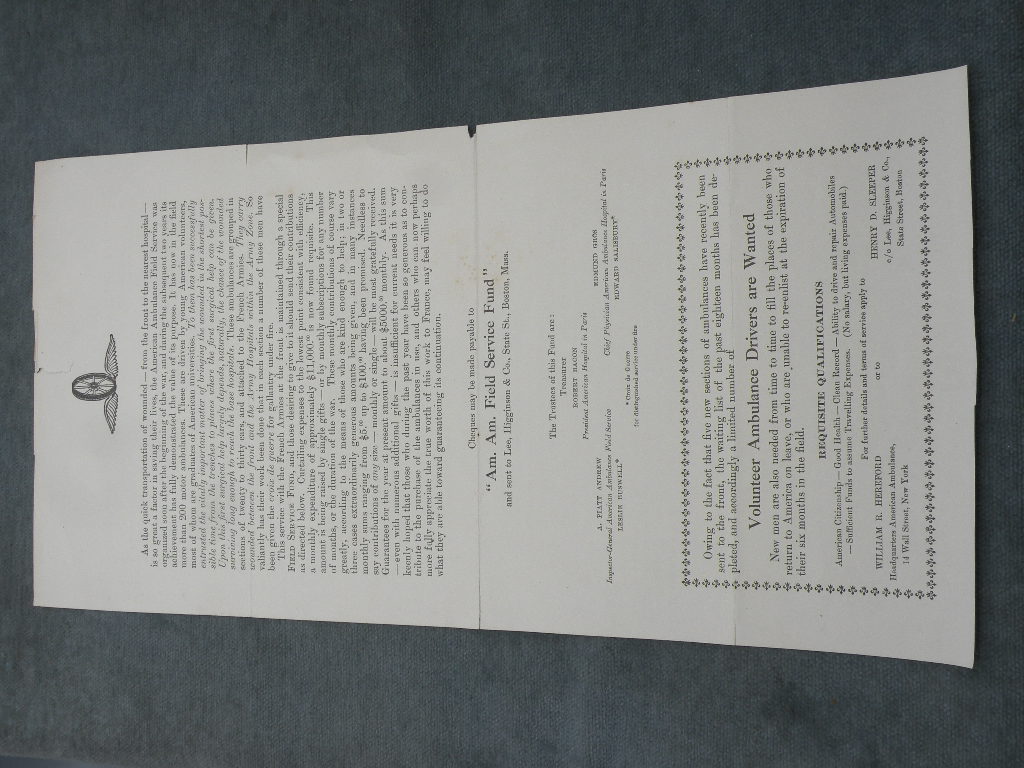 P-1804 Rare unit history for American Ambulance Unit