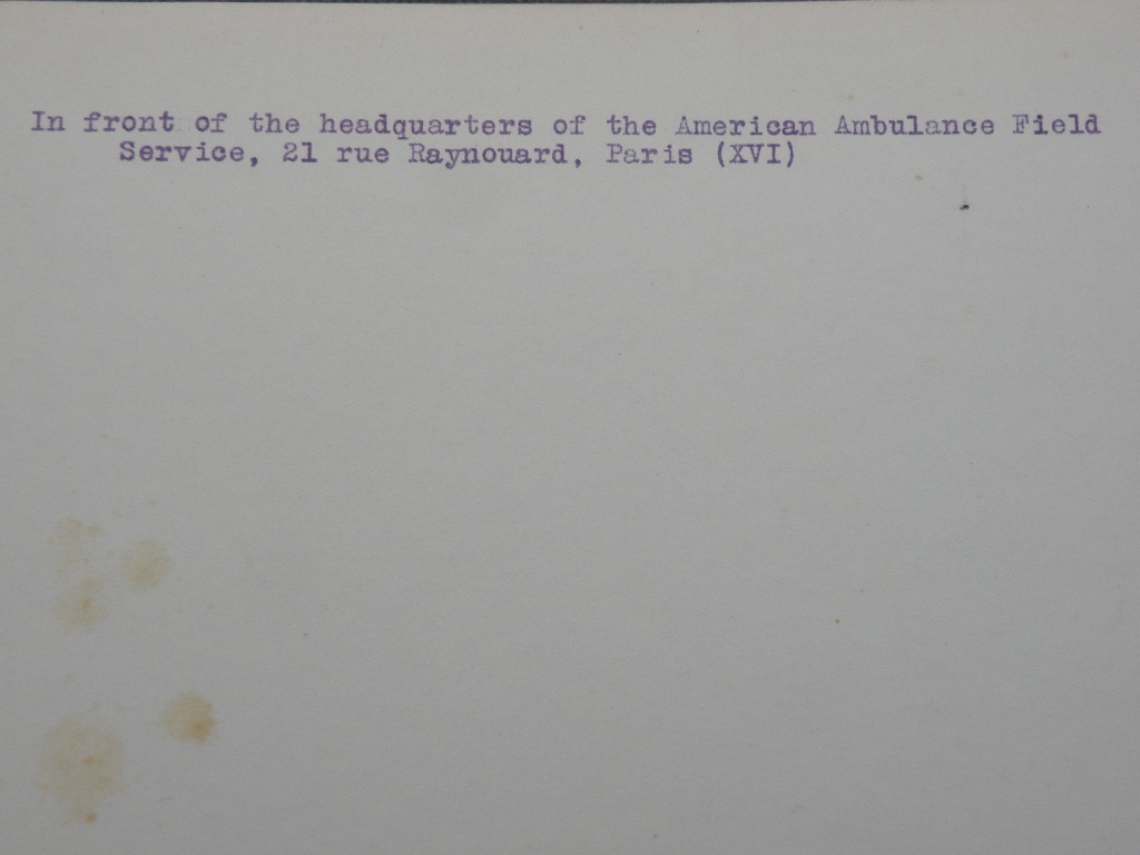 squad, American Ambulance Field Service in Paris. Shot was