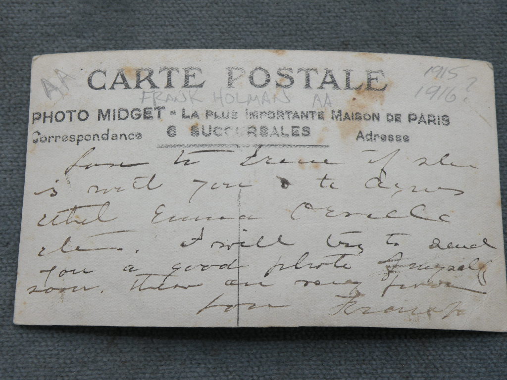 Field Service in Paris. Shot was taken in 1916. $75