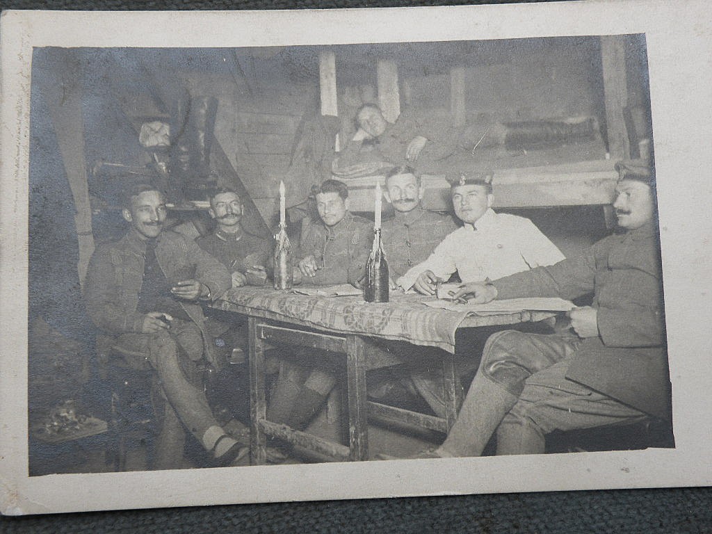German Soldiers relaxing in their underground dugout.