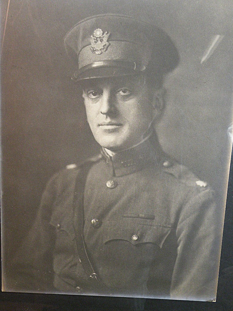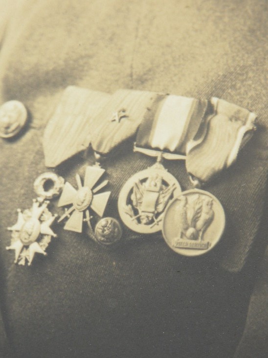 Piatt Andrew, wearing his medals and rooster patch. 10 x 14