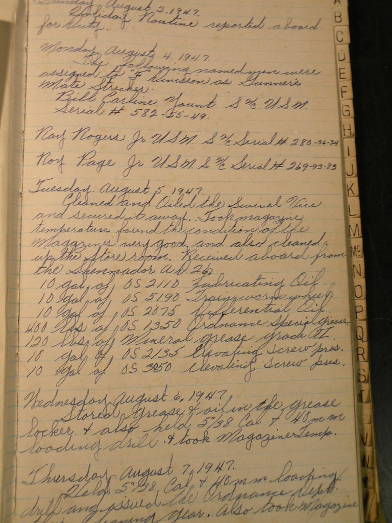 the USS Fargo. A few entries from 1945, but most from