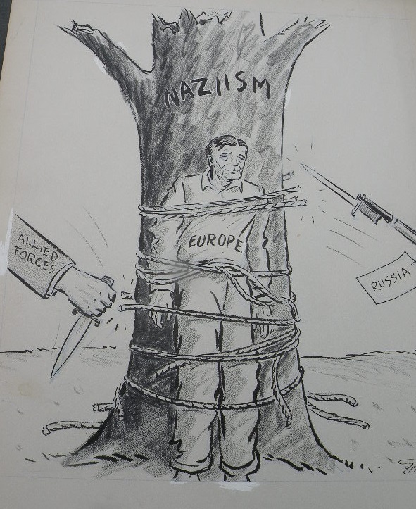 PW-1036 Fantastic WW2 original political cartoon drawn by