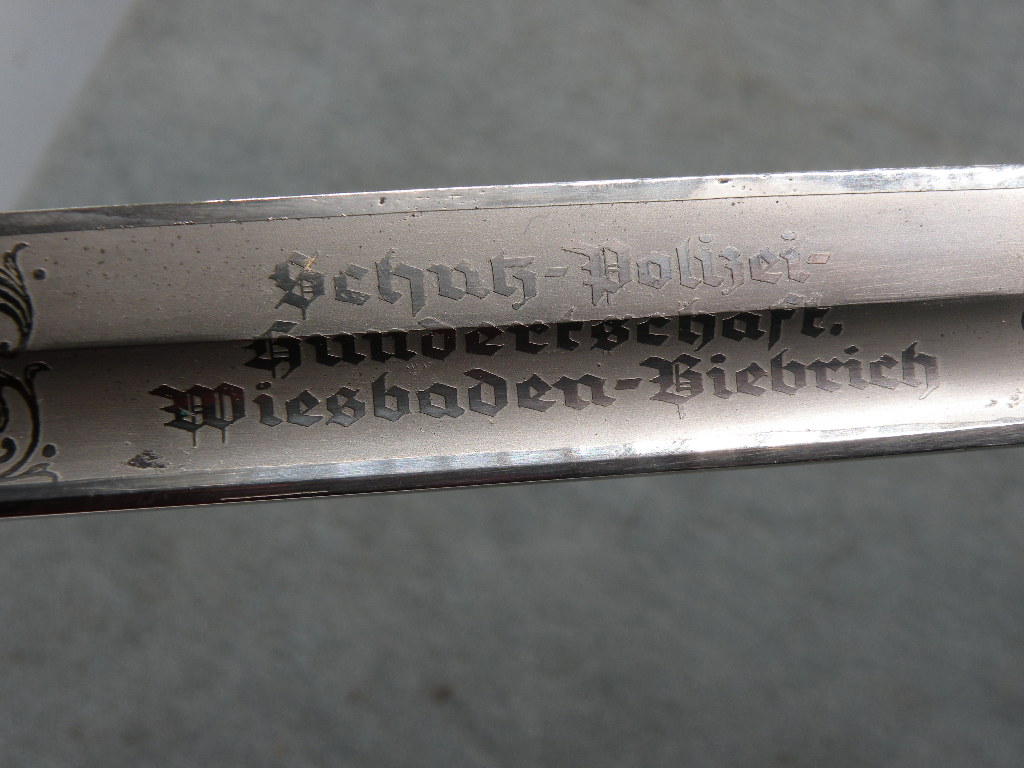 early War period. Etched, "Schutz-Polizei" hundertschaft