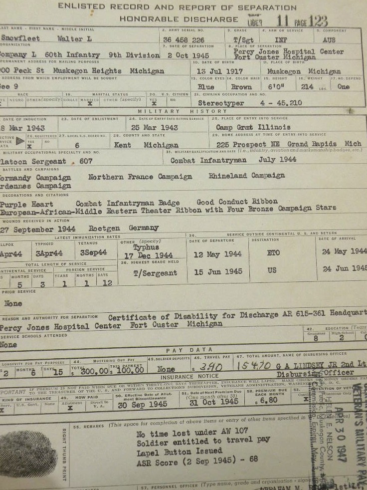 a newspaper clipping, VA paperwork and more. Pages from his